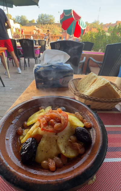 재밌게 노는 동안 저녁 식사가 나왔다. 모로코 전통음식인 소고기 따진을 시켰다. ‘찜’ 류라 보면 된다. 양고기찜, 닭고기찜, 소고기찜 이런식으로! 맛있었다 ㅎㅎ 모로코 가면 전통 음식인 쿠스쿠스랑 따진은 꼭 먹어보길 추천한다.