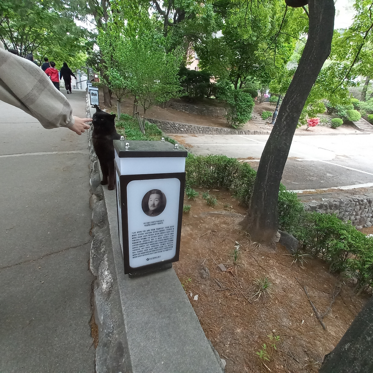 경내 순환로 옆 잔디밭에서 놀던 커다란 검은 고양이가 관람객에게 접근하며 장난치는 광경을 포착했다. 검지 손가락을 고양이 코에 갖다 대도 능청을 떨며 장난을 받아 준다. 이곳에서는 고양이도 젠틀 맨이다.