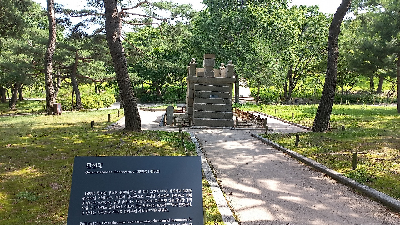 문정전 앞쪽에 있으며, 천문을 관측하던 소간의를 설치했던 시설로 보인다. 최근에는 시간을 측정하던 일성정시의(日星定時儀)를 설치했던 시설이라는 주장이 제기되고 있다. 향후 종묘와 연결되는 통로가 열릴 수 있는 남쪽에 위치해 있다.