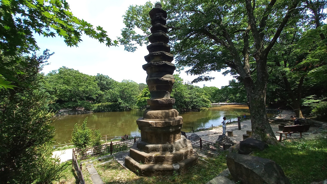 팔각칠층 석탑과 춘당지