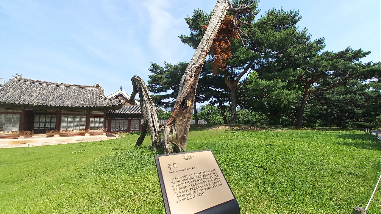 출구 쪽으로 나오다가 함인정 앞에 나무줄기와 가지가 붉은빛을 한 주목을 발견하였다. 사도세자와 장희빈의 한을 닮았다는 생각을 하다가, 한편으로는 세종과 성종과 정조의 효심을 상징하는 것 같기도 했다.