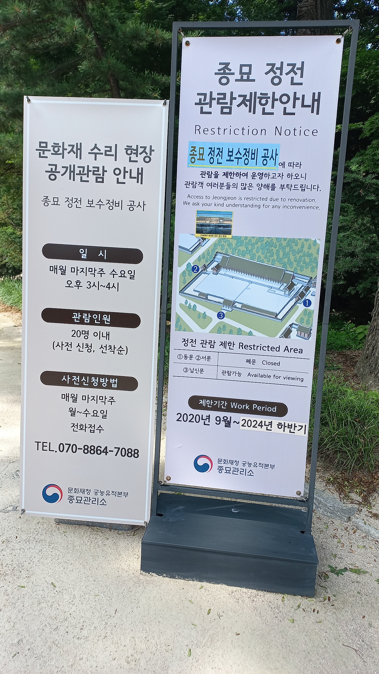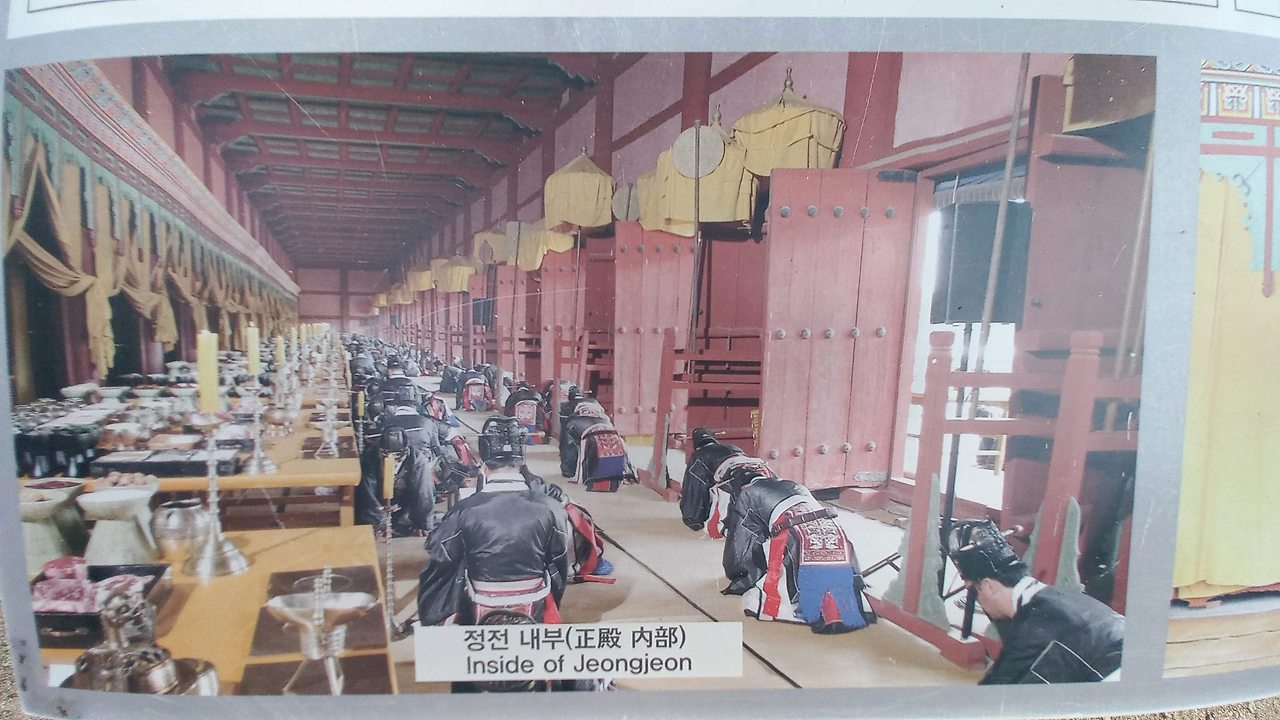 사계절의 각 첫 달과 납일(동지 뒤 세 번째 미일)을 합쳐 일 년에 다섯 번 제례를 지낸다. 아쉽게도 정전은 2024년 하반기까지 보수공사 중이라 내부 관람을 할 수가 없었다. 남 해설사님의 박진감 넘치는 해설과 사진을 곁들인 개인핸드북을 통하여 조금이나마 이해할 수 있었다. 유네스코 세계유산 등재여부를 실사하는 사찰단이 후문으로 들어와 정전을 본 후, 두말하지 않고 바로 결정을 하였다고 한다. 종묘는 그만큼 가치를 인정받았다는 설명이 있었다.