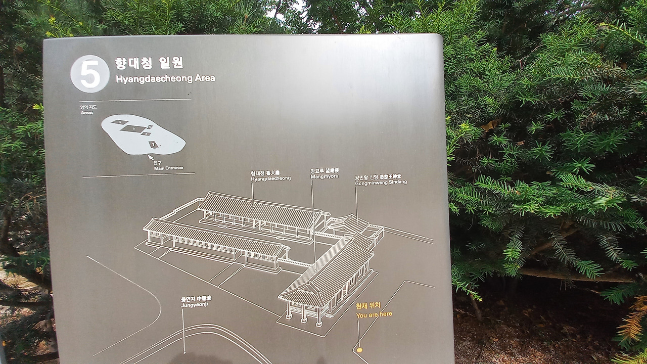 외대문(정문)>망묘루>공민왕신당>향대청>재궁>공신당>칠사당>정전>정전수복방>전사청>제정>영녕전>정전 악공청>영녕전 악공청