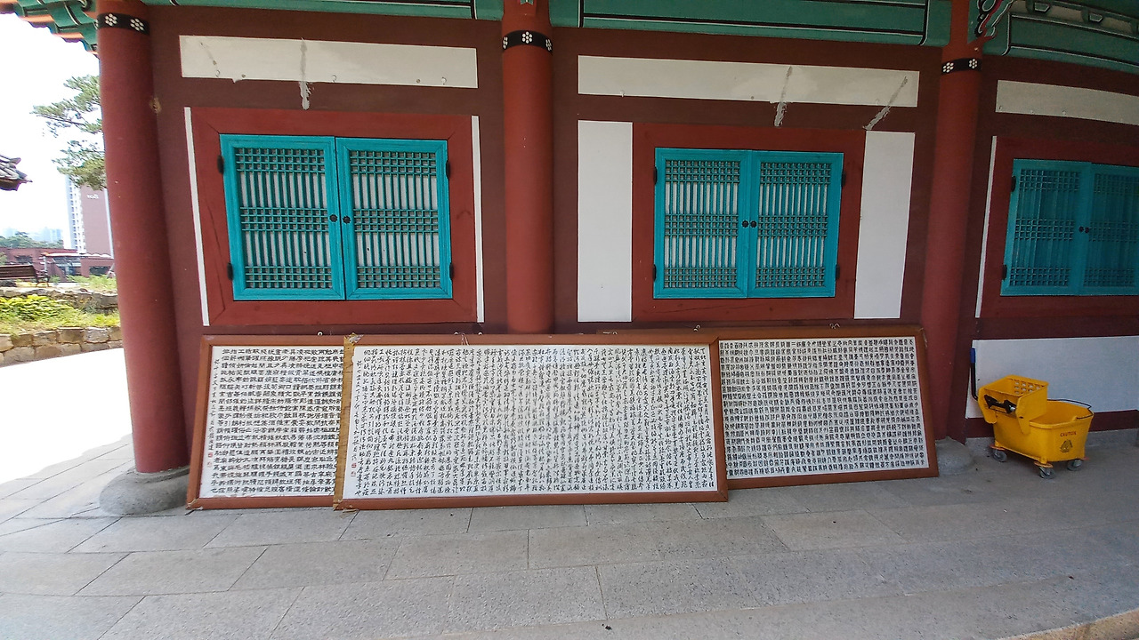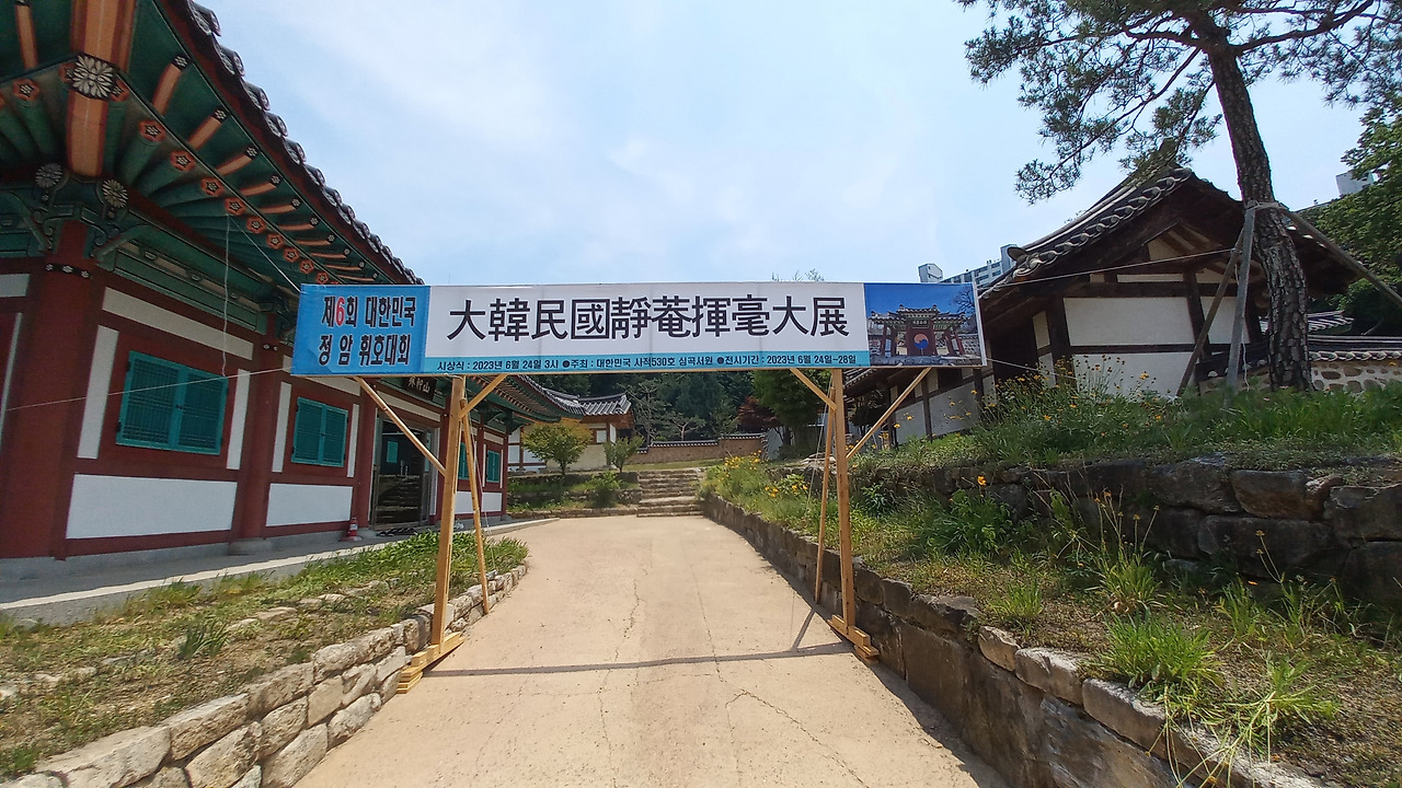 산양재 내부에서는 정암 휘호 대전 전시회(2023.06.24.~06.28) 준비 위원들이 바쁘게 움직이고 있었다. 탁자 위에는 한지에 멋지게 휘갈겨진 한문 구절이 금방이라도 힘차게 비상할 것처럼 또와리를 틀고 있었다.