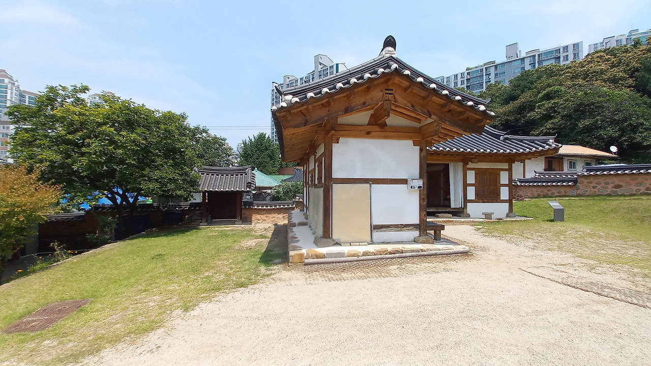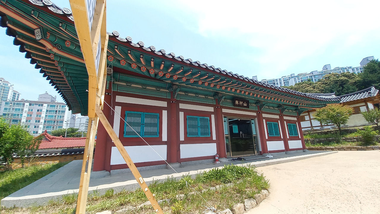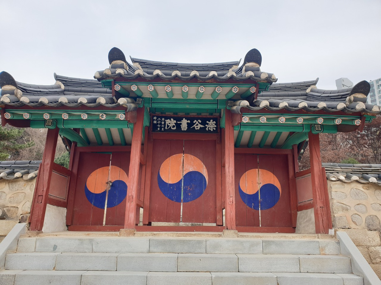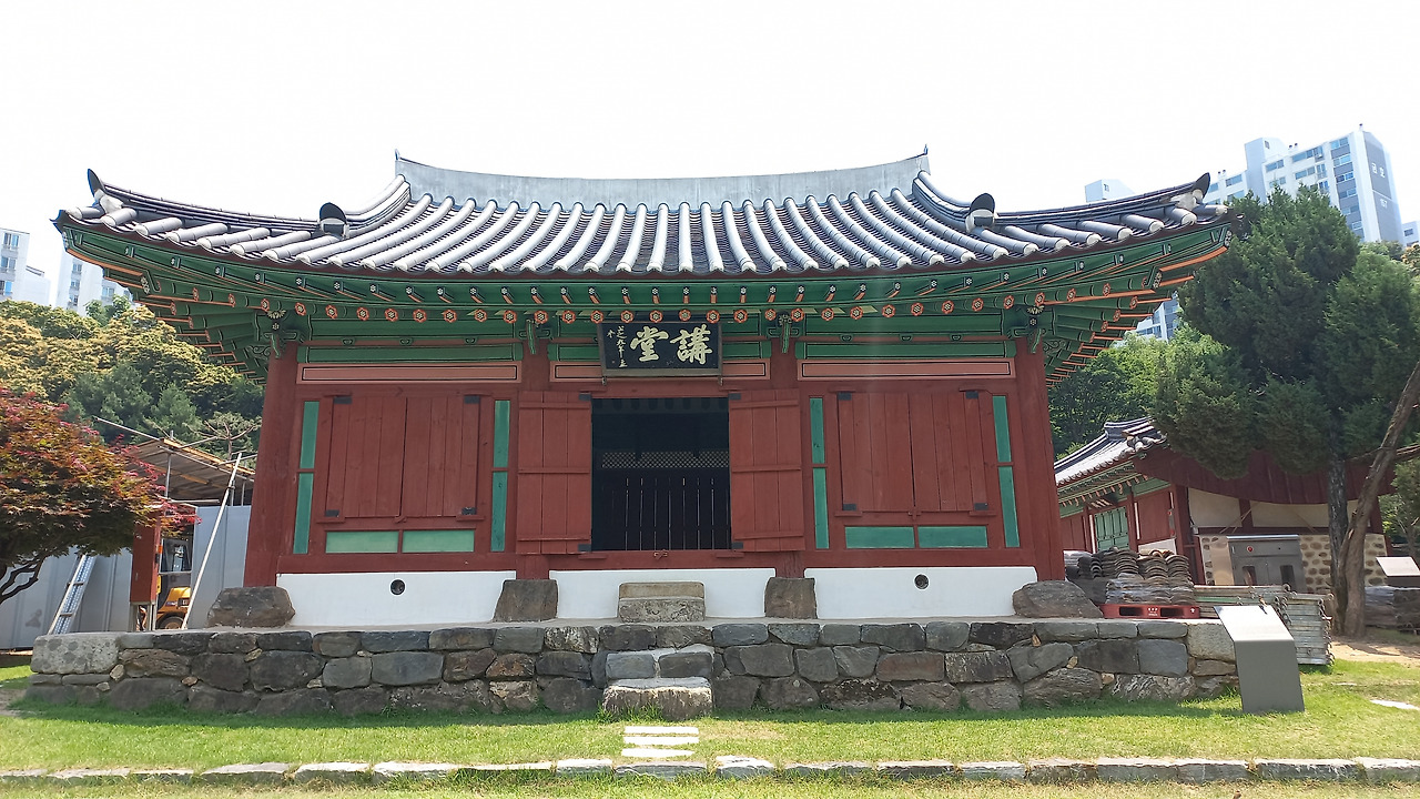 신분당선을 타고 성복역에서 내렸다. 이어 시내버스(720-1번)를 타고 두 번째 정류장에서 하차했다. 넓은 주차장 앞에 홍살문이 보였다. 두 개의 기둥을 세우고 태극문양 위에 삼지창을 설치했다. 붉은색은 악귀를 물리치고, 삼지창은 나쁜 액운을 공격한다는 의미다.