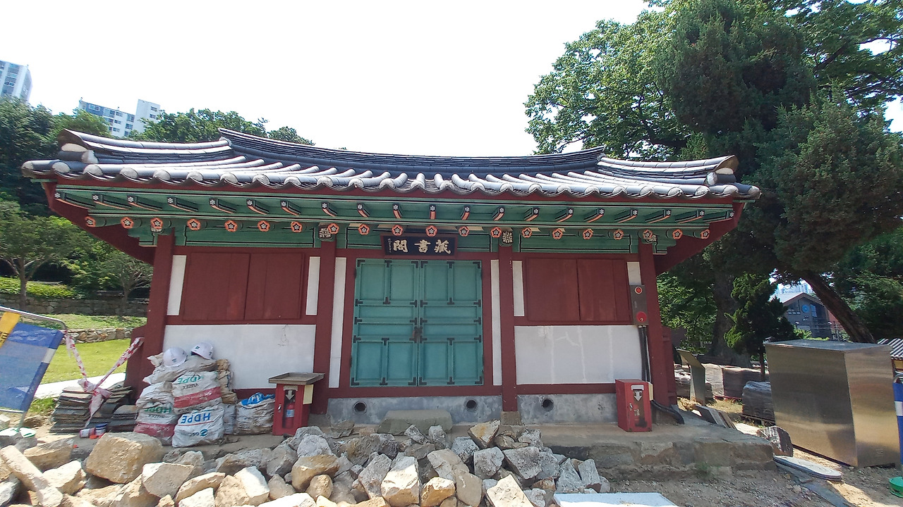 장서각(藏書閣)이 강당 뒤편 우측(동쪽)에 있다. 맞배지붕에 홑처마로 67종 486 책이 소장되어 있었으나, 1985년에 도난을 당하여 현재는 정암집(靜庵集), 조선사(朝鮮史) 등만 남아 있다.