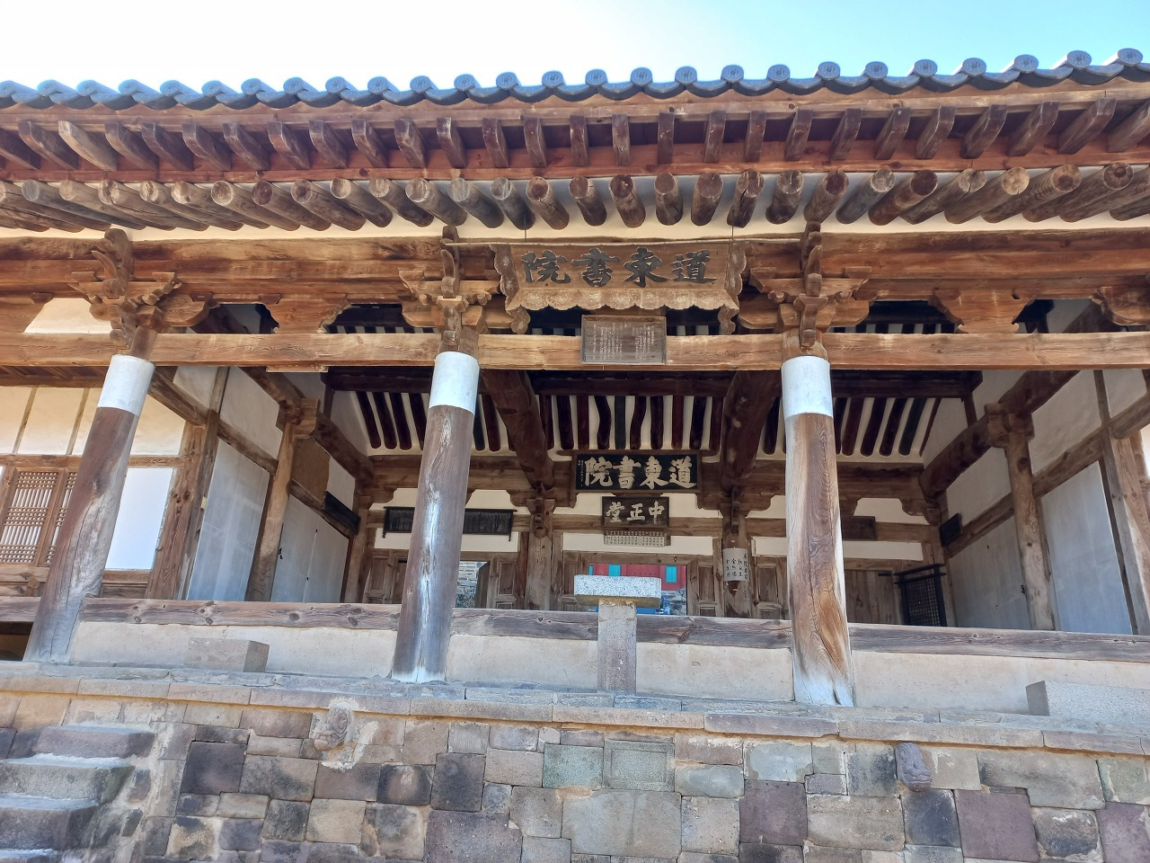 강당(講堂)이 전면에 위치하고 배향하는 사우(祠宇)가 뒤쪽에 배치된 서원의 전형적인 전학후사(前學後嗣) 형식을 갖추고 있다. 1871년 흥선 대원군의 서원 철폐령 시 조선에서 훼철되지 않은 47개 서원중 하나다. 외삼문(外三門)을 들어서니 중앙에 강당이 보였다. 여러 가지 행사, 유림들의 회의와 학문을 토론 장소다.