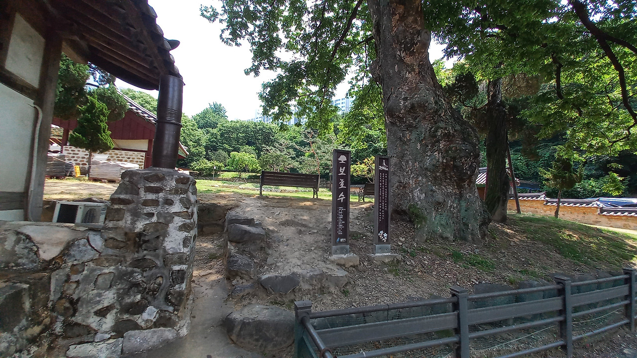 경내 연지(연밭이 있는 못) 옆에는 선생이 직접 심은 것으로 알려진 수령 500여 년의 느티나무(높이는 17m, 둘레가 4m)와 은행나무가 있다.
