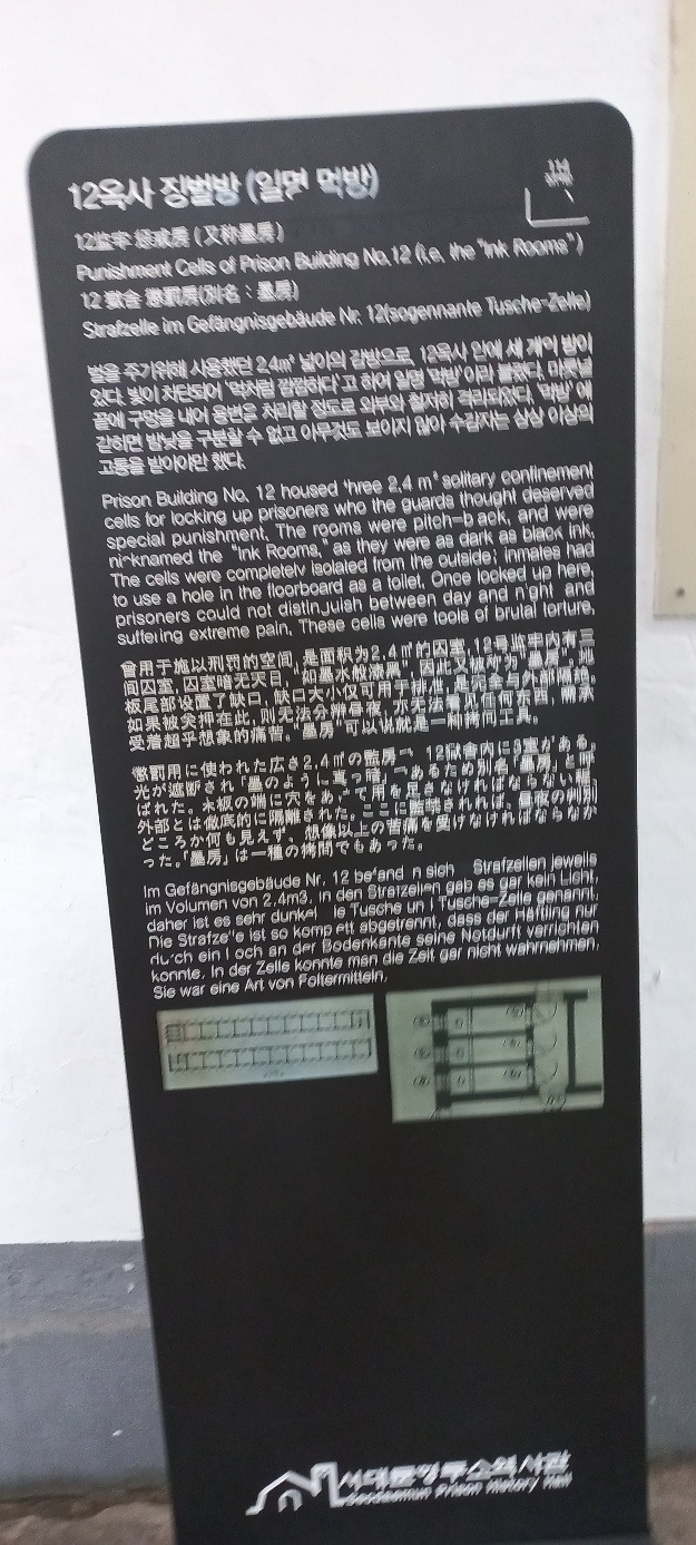 먹방(2.4m2 넓이의 먹처럼 캄캄한 징벌 방, 12옥사안에 3개의 방이 있었다)