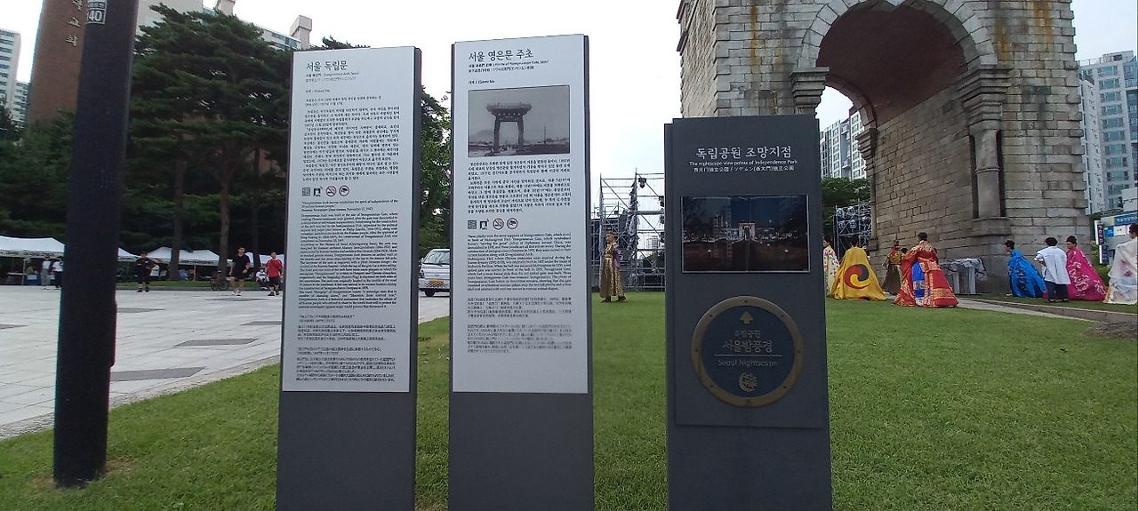 사직단 탐방 후 담장옆 정류장에서 시내버스를 타고 영천시장 앞에서 내렸다. 독립문까지 도보 5분 거리다. 서울 서대문구 현저동 한 구역에 독립문, 송재 서재필 선생 상, 서대문 형무소, 독립관, 순국선열추념탑이 있다.