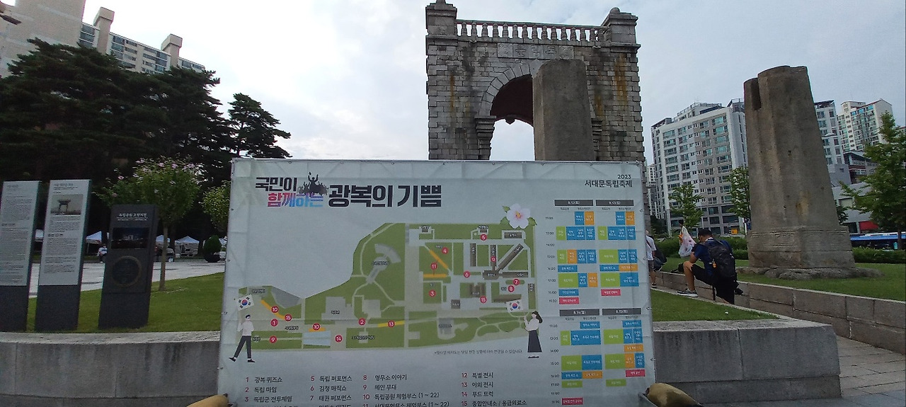 마침 2023년 서대문 독립축제 기간이었다. 주제가 광복의 기쁨이다. 저녁 시간대 독립문 중심으로 패션쇼, 가수들이 출연하는 행사가 예정되어 있었다. 왕과 왕비 분장자등 출연진들이 맹렬히 예행연습을 하고 있었다. 패션모델들의 활기찬 당당한 걸음걸이에서 대한민국의 역동성과 희망을 보았다. 특히 보행 무대 마지막 꼭짓점에서, 잠시 멋진 포즈를 취한 후, 유턴할 때 짜릿한 감동이 밀려왔다. 광복은 그렇게 왔다.