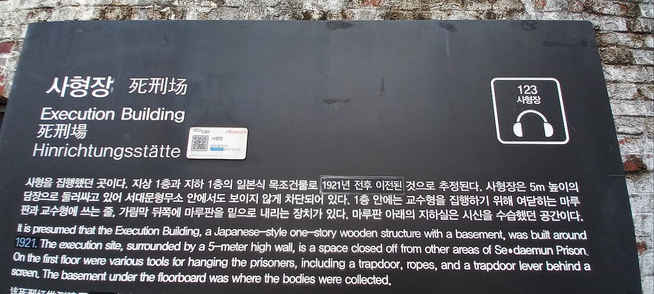 사형을 집행하였던 건물원형(1923년 건립). 이곳에서 수많은 독립운동가와 민주화운동가들이 형장의 이슬로 사라져 갔다.