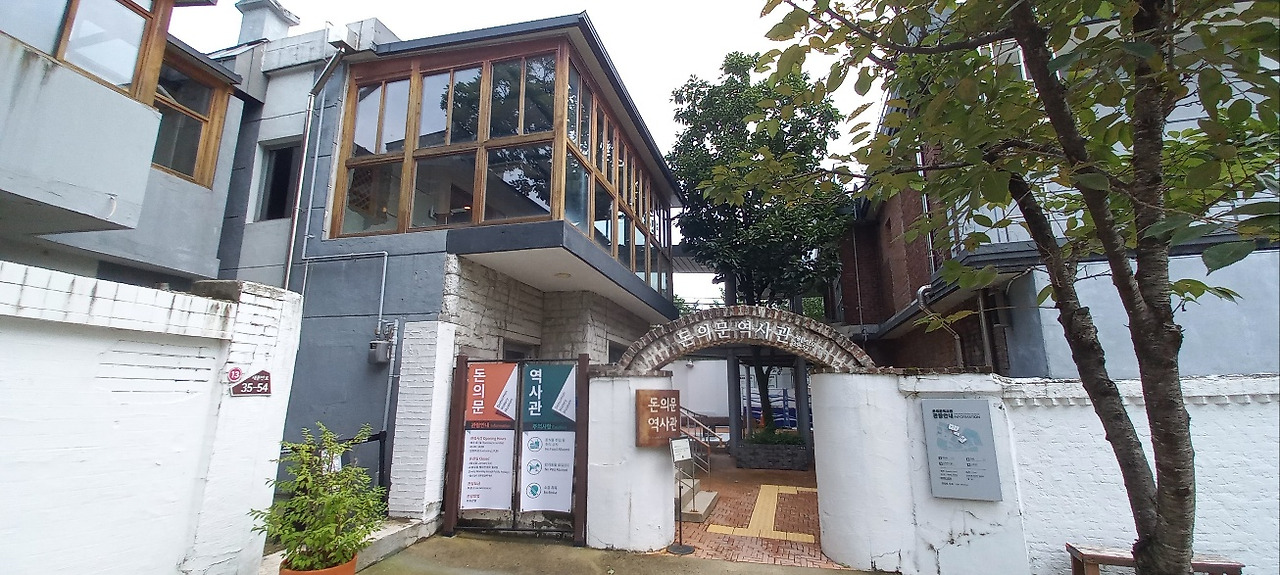 4.19 혁명 기념 도서관 1층 탐방 후, 동쪽 경희궁이 있는 언덕으로 올라왔다. 좌측에 송월길을 사이에 두고 강북삼성의료원(경교장)과 돈의문 역사관, 돈의문 박물관 마을이 있다. 이 일대에 돈의문이 있었다.