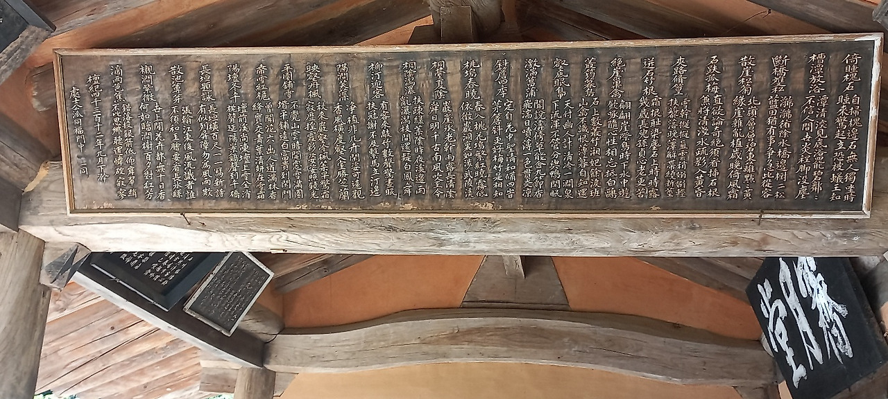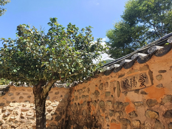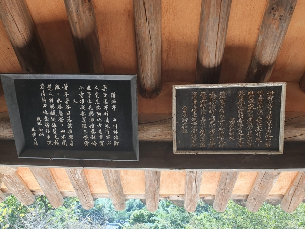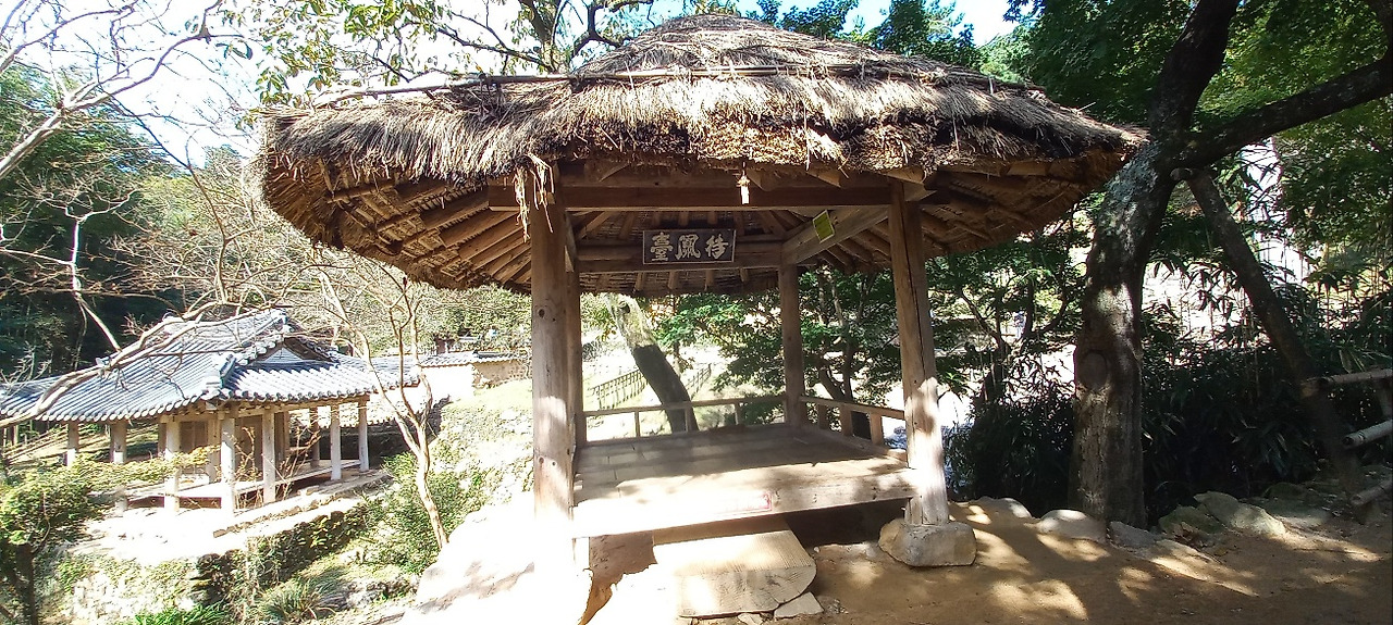 계곡을 연결하는 외나무다리 약작(略彴)을 건너가면 매화가 심어졌던 매대 뒤쪽에는 우암 송시열이 쓴 ‘소쇄처사양공지려(瀟灑處士梁公之廬, 양산보의 오두막이라는 뜻)’가 하얀 벽면에 검은 글씨로 박혀있다.