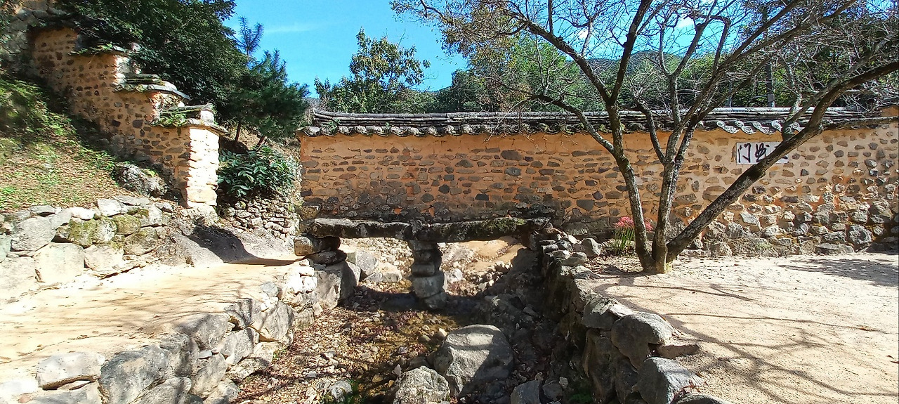 담장 밑에 돌기둥을 세워 물이 자연스럽게 흐르도록 만들었다. 담 밖과 담 안을 이어주는 문이다. 오곡문 북동쪽 담장에 있었던 문이었는데, 현재는 문은 없어지고 담장에 현판만 보존되어 있다.