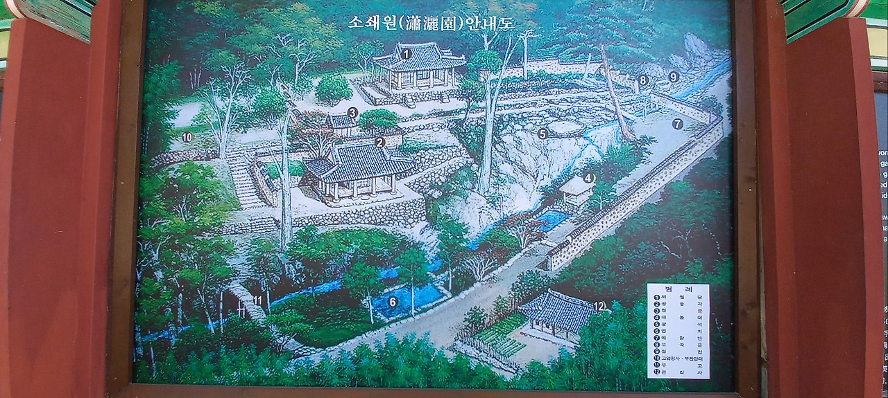 마침 추석 연휴라 10월 2일(월) 아지트 순천에서 첫 버스를 타고 U-square 광주 종합버스터미널에 하차하였다. 방향 감각을 상실하여 시내버스를 몇 번 잘못 갈아탔다. 우여곡절 끝에 188번 버스를 혼자 타고 험준한 무등산 옛길을 넘어 담양 소쇄원에 도착하였다. 무등산을 넘어가니 그 유명한 '무등산 수박' 생산 마을이 나왔다. 전남 담양군 가사문학면 지곡리에 있다. 2008년 명승 제40호 지정되었다. 면적은 약 4,958.7m²이다.