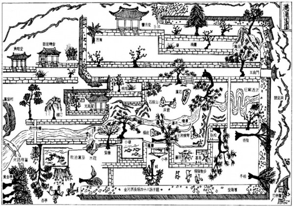 두 개의 연못인 상지(上池)와 하지(下池)로 물이 흘러갔다. 옛날에는 두 연못 사이에 물레방아가 있었다고 한다. 연못에는 물고기를 길러 스승과 제자의 관계를 물과 물고기에 비유하면서 벼슬을 버리고 고향으로 되돌아온 심정을 담았다.