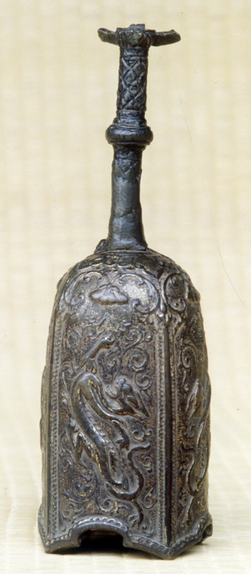 요령(搖鈴)은 불교의식을 행할 때 흔들어 소리 내는 도구로서 높이 20.6㎝, 지름 6.6㎝의 도금한 청동제이다. 몸은 4 각형이고 각 면이 팽창되어 둥근 형태를 하고 있다. 몸 위에는 마디가 하나 있는 긴 손잡이가 있다. 화려한 용 문양과 당초문이 4면에 모두 양각되어 있다.