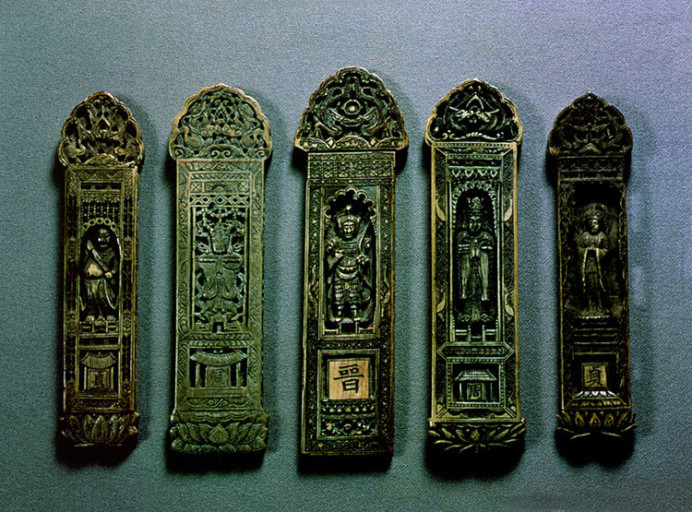 두루마리 형태의 경전을 보관하기 위해 만든 일종의 보자기다. 대나무를 0.45*1mm로 쪼갠 후 색실로 엮어서 직사각형 모양의 발을 만든 것으로 2점이 있다. 비단을 두르고 뒷면에는 종이를 발랐다. 1278년경 경패와 함께 전래된 것으로 보인다.