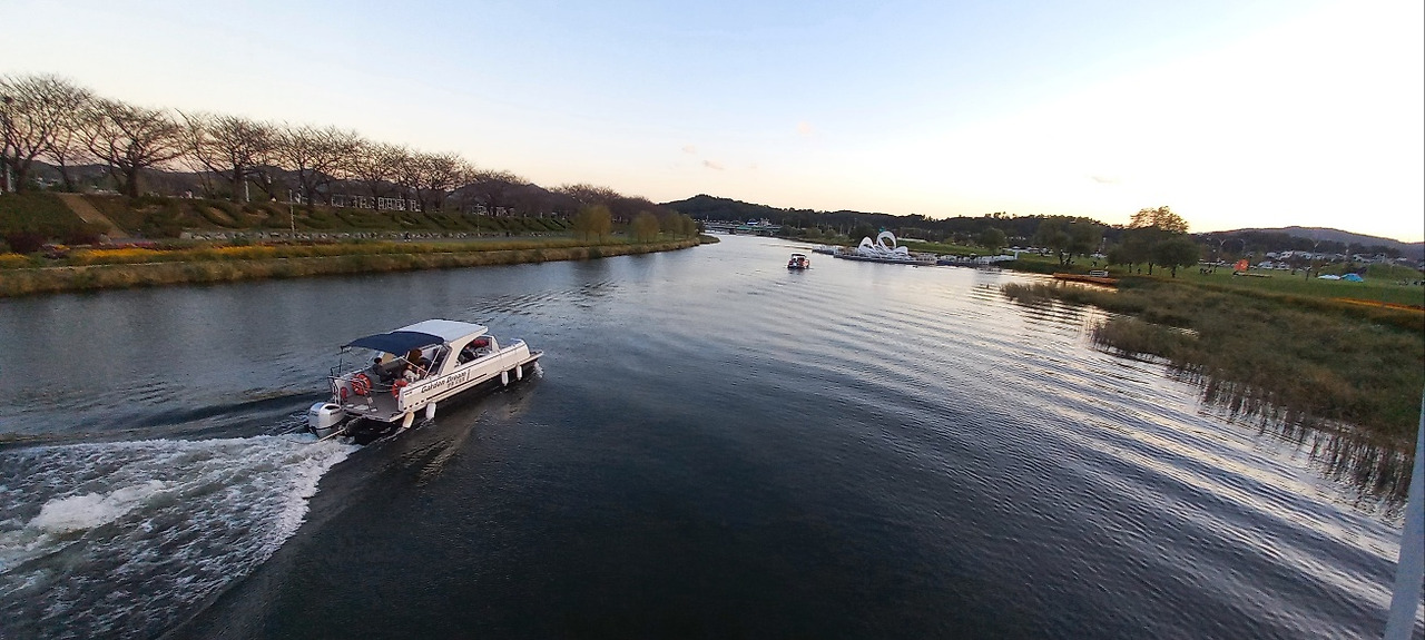 지리산 피아골 탐방(2023.10.21 토) 후, 구례버스터미널을 거쳐 순천대 앞에서 하차했다. 아지트에서 잠시 쉰 후, 해질 무렵 옆지기와 동천 좌우측에 있는 ‘오천 그린 광장’과 ‘풍덕 경관 정원’을 둘러보았다. 동천에는 소형 유람선이 관광객을 태우고 동천 하류 남쪽으로 물결을 길게 남기며 내려가고 있었다. ‘오천 그린 광장’ 및 ‘풍덕 경관 정원’ 관람은 무료다.