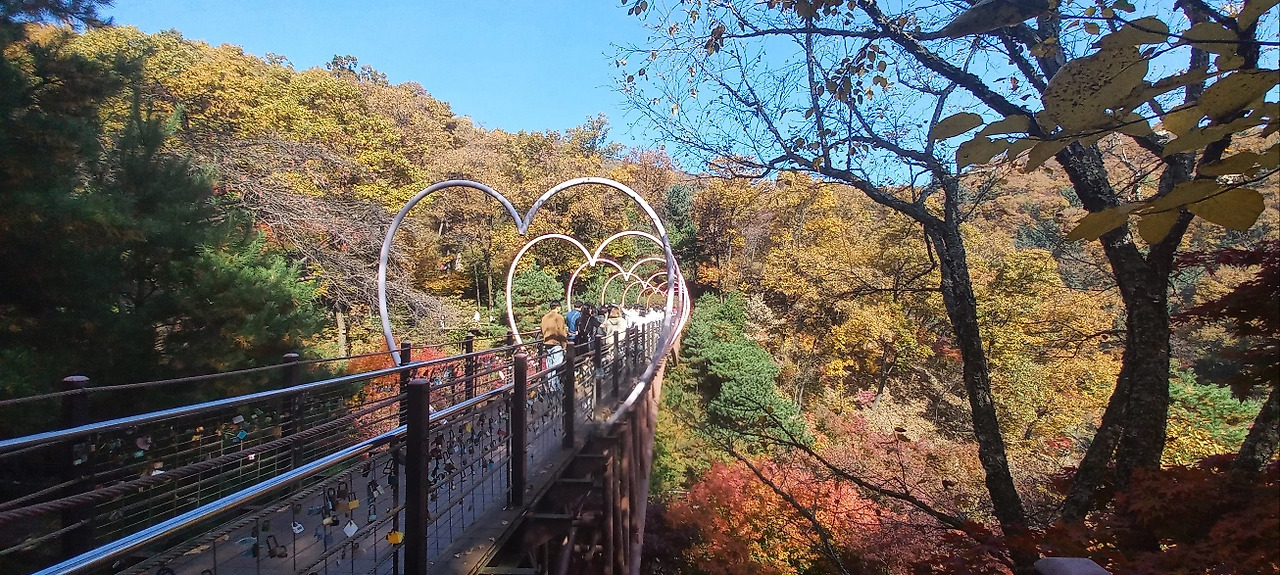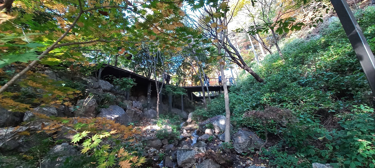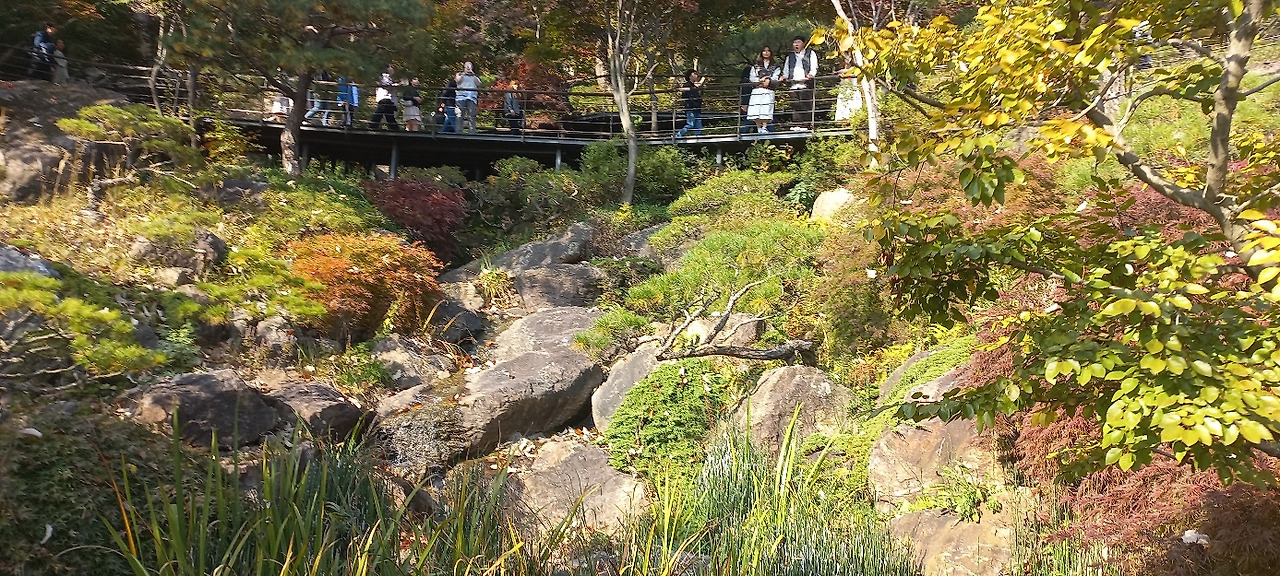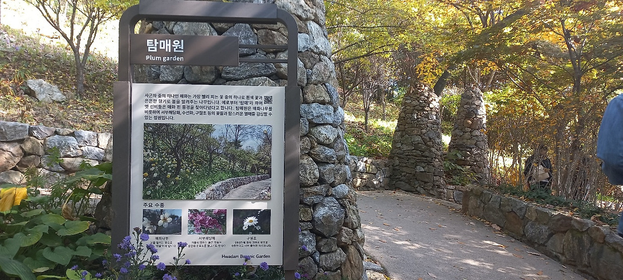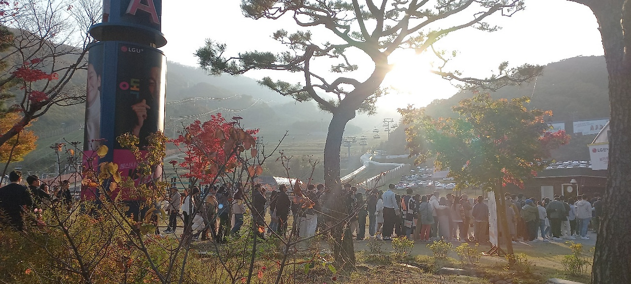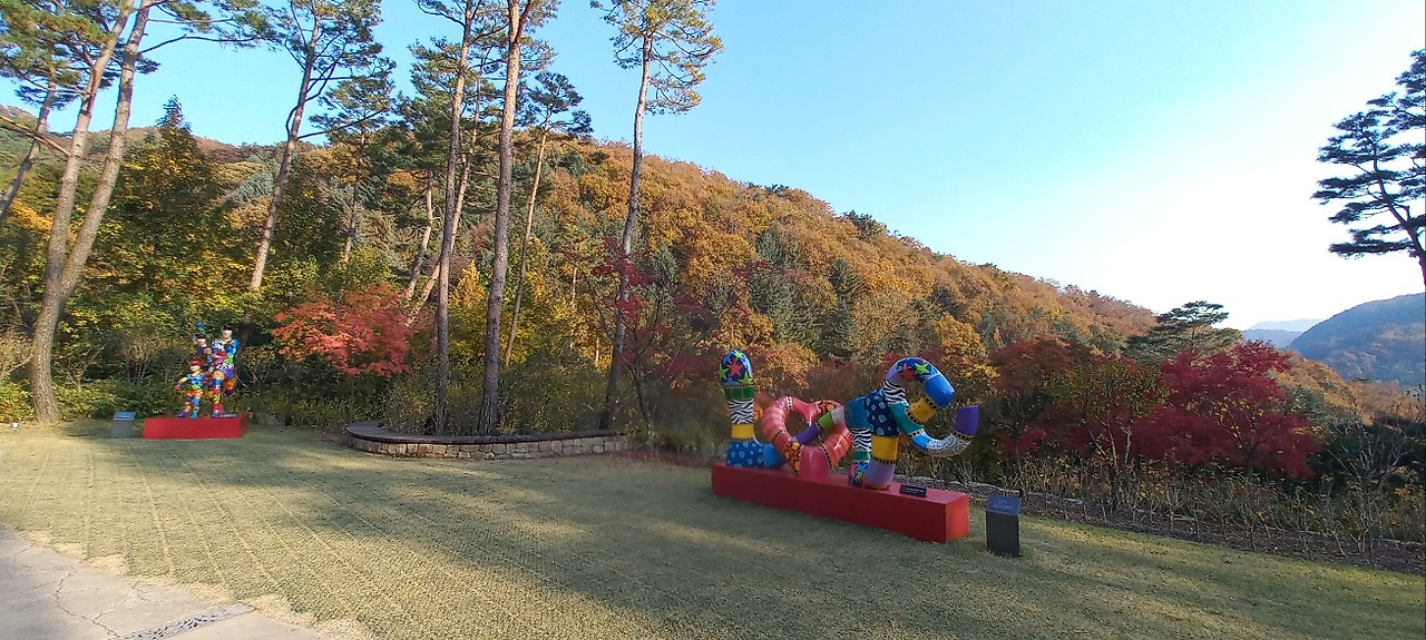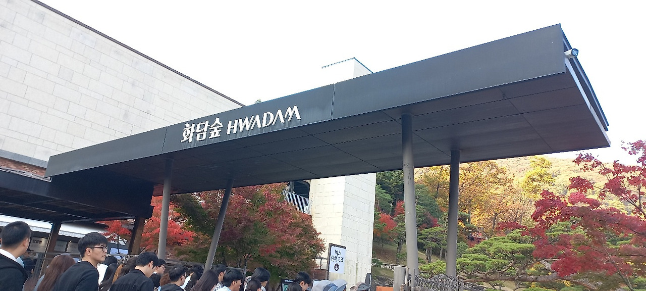 관람 일(2023.10.28. 토, 13:00, 맑음, 10~15도)이 기다려졌다. 멀리 경남 창원에서 4시간 동안 고속버스를 타고 올라오는 동료가 있어 서울고속버스터미널에서 만났다. 한 동료의 차로 화담숲까지 이동했다. 차내에서 그동안 밀린 이야깃거리가 쉴 새 없이 쏟아져 나왔다. 남자들도 넷이 모이면 승용차 지붕이 들썩이거나, 바퀴가 빠지는 수가 있다. 물론 이동 중에 햄버거 과일 커피등으로 간단한 식사를 했다. 주차 후 곤돌라를 타고 올라가려고 긴 줄 뒤에 섰다가 인내심 결핍으로 곧 포기하고, 매표소 입구 쪽으로 올라가서 QR코드를 보여주고 입장했다.