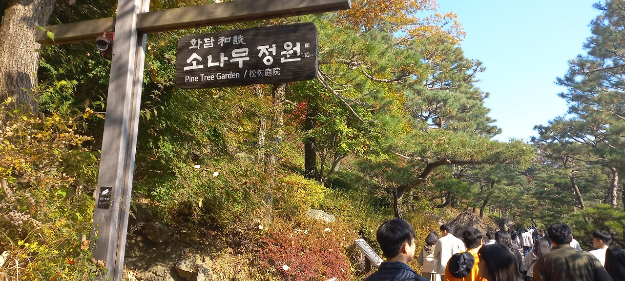 입장하자마자 천년화담송이 웅장한 자태로 환영을 해 주었다. 역시 한국인에게는 소나무가 제일 친근하다. 사진 찍어 주는 역할을 하는 동료가 있어 그가 지정하는 곳에서는 포즈를 취해 주어야 했다. 때로는 지나가는 다른 관광객에게 사진 찍어 달라는 섭외 부탁도 그 동료가 담당했다. 한 번은 연인 한 쌍에게 사진 찍어 줄 것을 부탁했다. 감사표시로 “올해 결혼식 올리실 수 있을 것입니다.”라고 예언 비슷한 말을 했는데, 이미 결혼한 사이라고 해서 한 바탕 웃었다.