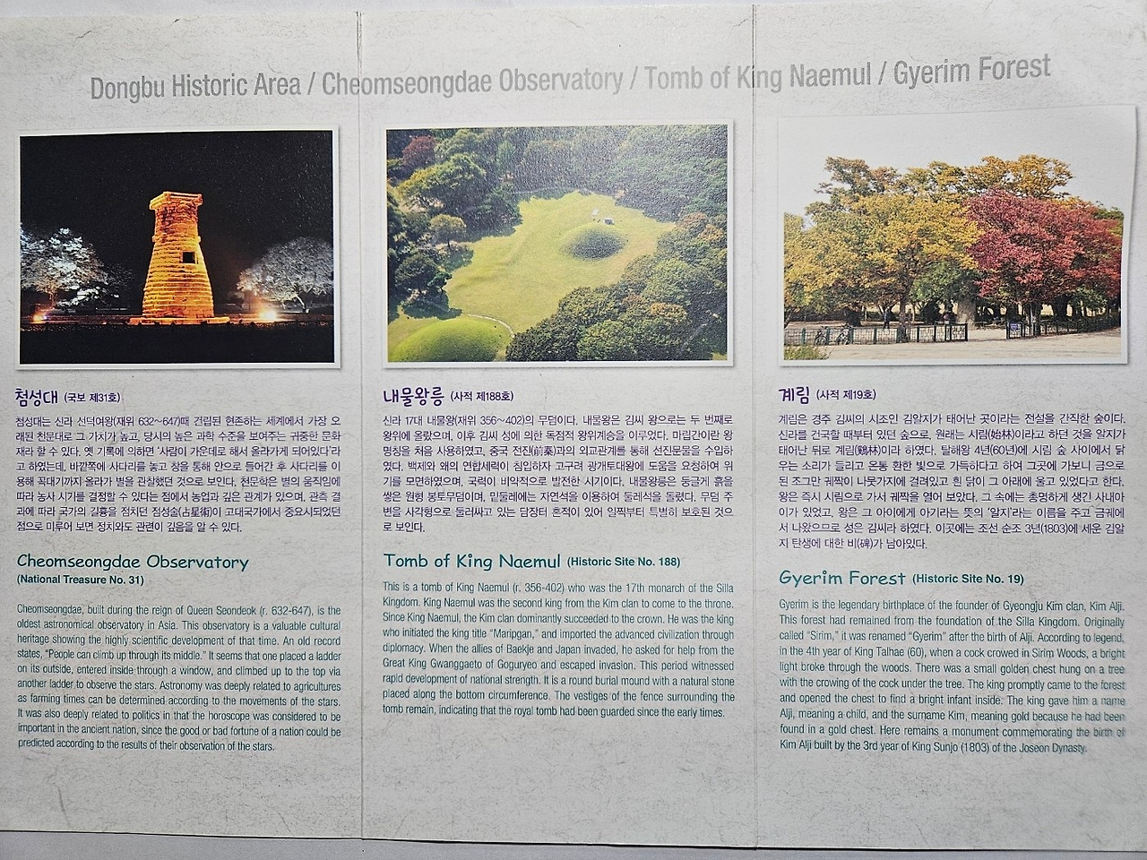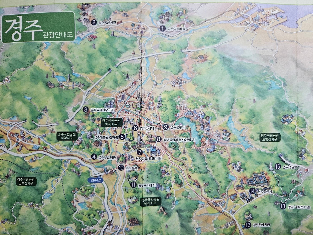 석굴암> 불국사>분황사> 황룡사지> 월성(석빙고)>동궁과 안압지(월지)>경주 국립 박물관> 월성> 계림> 첨성대