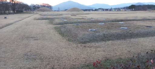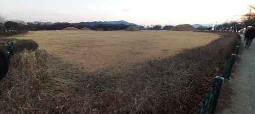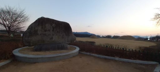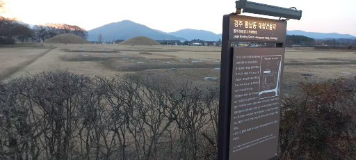 멀리 왕릉군이 보였다. 특이하게도 많은 왕릉들이 평지나 평야에 자리 잡고 있었다. 석축만 덩그러니 남은 옛날 대형 건물터만 보였다. 얼마나 많은 세월이 흘렀던가? 1988년과 2006년 발굴 조사 결과 15기의 건물지를 확인하였다.
