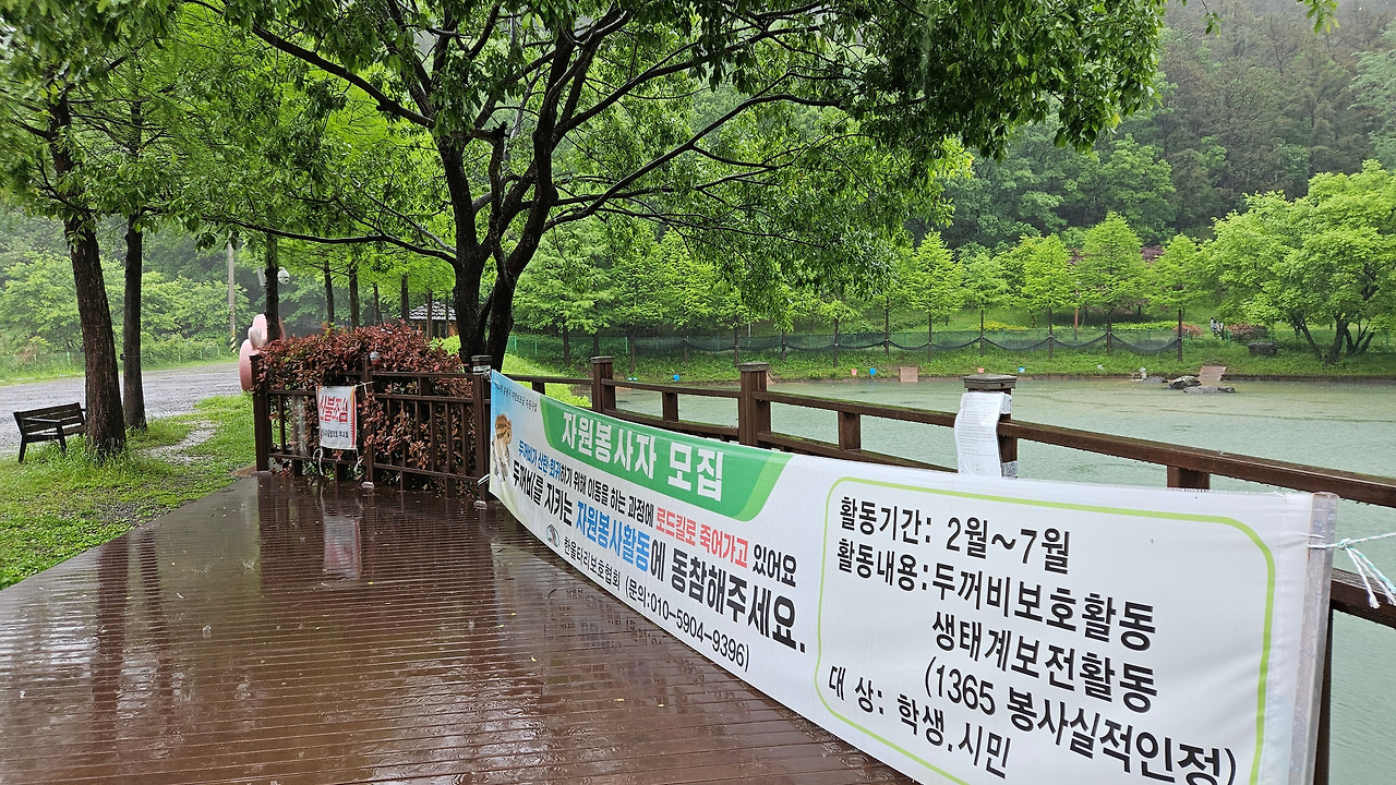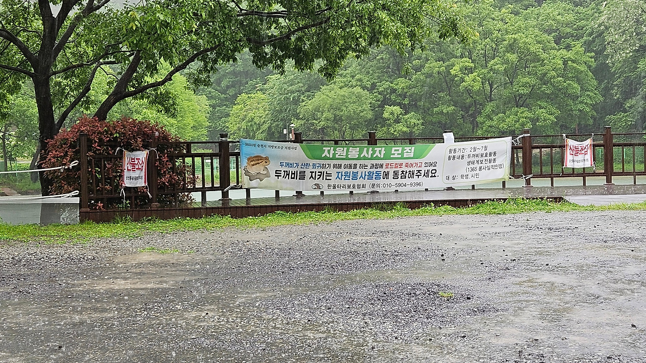 이곳은 두꺼비들에게는 천국과 같은 곳이다. 환경단체 자원봉사자들이 2월 저수지에서 짝짓기 시기부터 올챙이를 거쳐 6월에 어린 두꺼비가 되어 고향인 봉화산으로 올라갈 때까지 지켜준다.