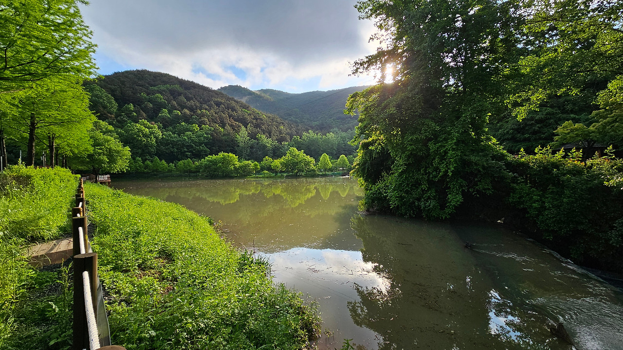 어린이날 전후 며칠 연휴 가족과 순천여행을 떠났다. 아지트 근처 봉화산 밑자락에 업동저수지가 있어 좋아하는 산책 코스다. 간밤 오래간만에 비가 좀 많이 왔다.