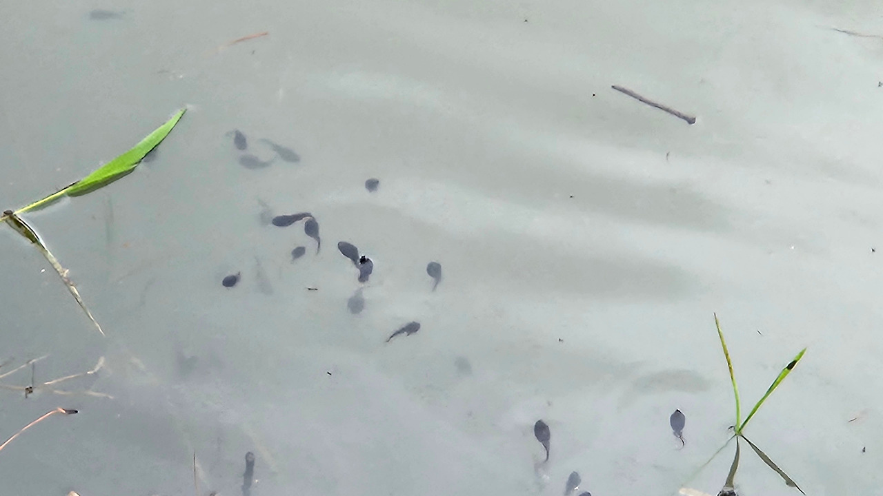 아침에 저수지를 산책할 때, 수문에 물이 넘쳐 개울로 흘러 내갔다. 수문에 하늘색 모기장을 덧대어 놓았다. 멀리서 여성 자원봉사하시는 분이 벽돌 두 장을 들고 다가왔다. 그 벽돌로 모기장 밑을 눌러 놓아야 된다고 했다. 철없는 아기올챙이가 물살에 빠져나가 버리는 것을 방지하기 위함이라고 하셨다. 자세히 보니 수문 근처에 뒷다리가 난 아기들이 생과 사의 갈림길에서 위험하게 놀고 있었다. 자원봉사자분의 애절한 마음이 닿았다.