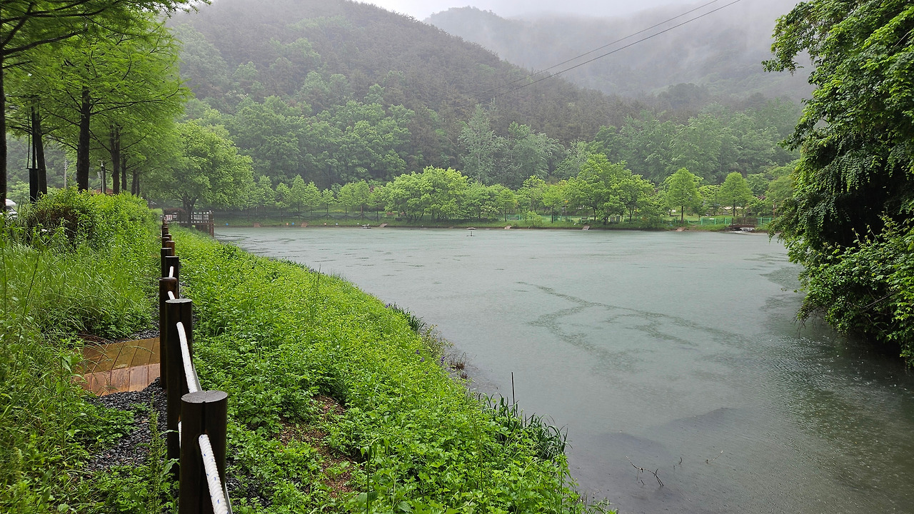 비 오는 날의 업동 저수지 (호수 건너편 숲속이 두꺼비들의 고향, 돌아갈 장소다)