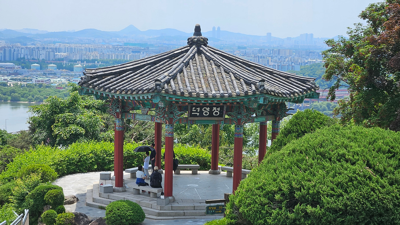한강과 인근도시 풍경을 감상할 수 있는 정자다.