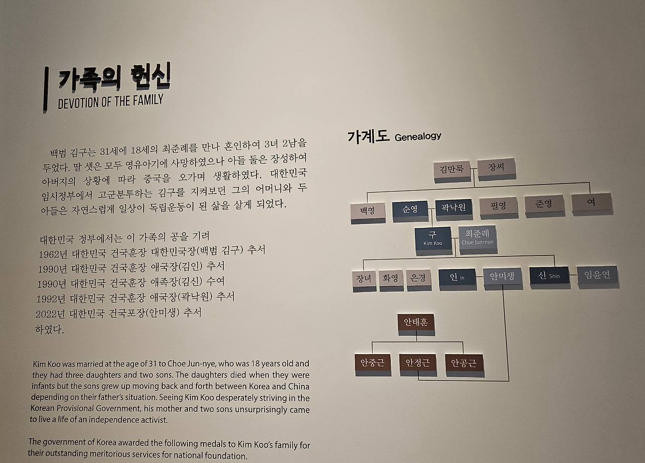 가족 가계도 / 안미생(안중근 의사 조카) / 백범 어머니 곽낙원 여사