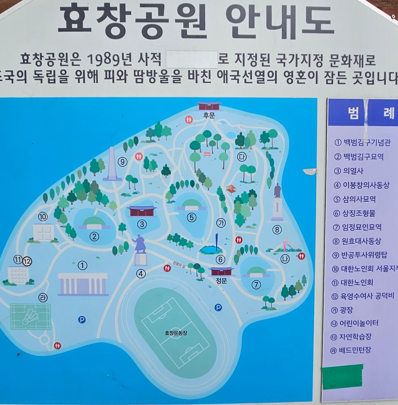 오래전부터 효창공원에는 꼭 한번 방문하고 싶었다. 김구 선생 묘소와 안중근 의사 가묘가 있는 장소이기 때문이었다. 작년 남산 공원 탐방 때, 백범 김구 광장 (https://brunch.co.kr/@jylee2020/100)의 흰 호랑이상은 벅찬 감동을 주었다. 그 바로 언덕 아래의 안중근의사 기념관(https://brunch.co.kr/@jylee2020/99)에서 보았던 안의사의 혈서와 단지는 나에게 언제 효창공원에 가볼 것이냐고 계속 물어왔다. 더구나 김구 선생이 돌아가신 경교장 (https://brunch.co.kr/@jylee2020/124) 2층에 안두희의 권총 탄환이 뚫은 창을 보았을 때의 안타까움이 결국 나를 효창공원으로 이끌었다. 오늘(2024.05.25, 토, 맑음 20도)이 바로 그날이다. 새남터 순교 성지 탐방 후 도보로 이동, 용산역 앞 버스정류장에서 400번 버스를 타고 숙대입구에서 내렸다.