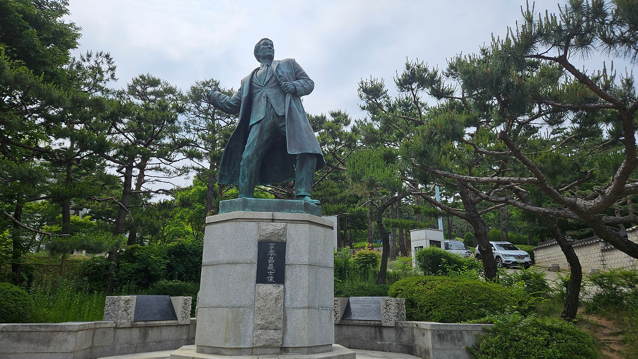 기념관에 들어서자 중앙홀에 백범좌상이 있다.