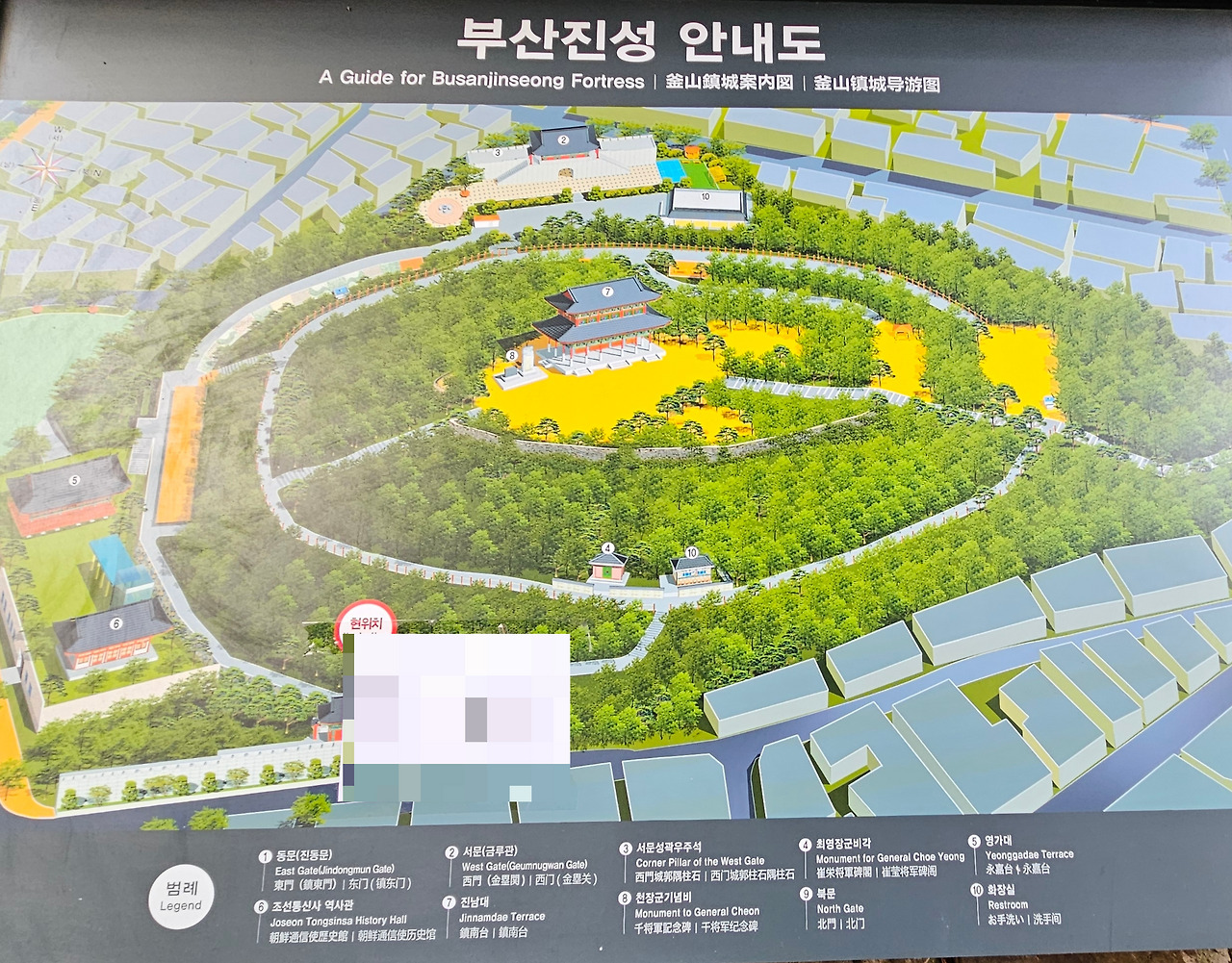 부산진성 북문은 구장루(龜藏樓)라고 불렸다. 북문 현판을 찾지 못했다. 마침 산보 중인 마을 어르신께 물어보았다. 어르신은 북문에는 현판이 없다고 했다. 공원 출입구처럼 생겨 좀 실망했다.