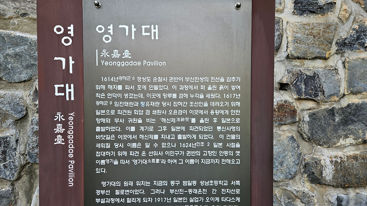 1614년 광해군 6년 순찰사 권반은 못을 파고 호(濠)를 만들어서 전선(戰船)을 감추었다. 작은 언덕을 쌓아서 대(臺)를 만들었다. 1624년 인조 2년 이민구가 권반의 고향이 안동이라 안동의 옛 이름인 영가(永嘉)를 가져와 이름을 지었다. 조선통신사의 안전한 항해를 기원하던 해신제가 거행된 곳이었다. 통신사의 출발점이었다.