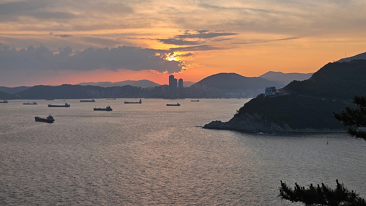남항조망지에서 부산의 대표항인 부산남항의 전경을 한눈에 바라볼 수 있다. 마침 일몰 풍경을 담아을 수 있는 귀한 시간이 왔다. 야간에는 부산남항과 송도일원의 야경도 함께 감상할 수 있다.