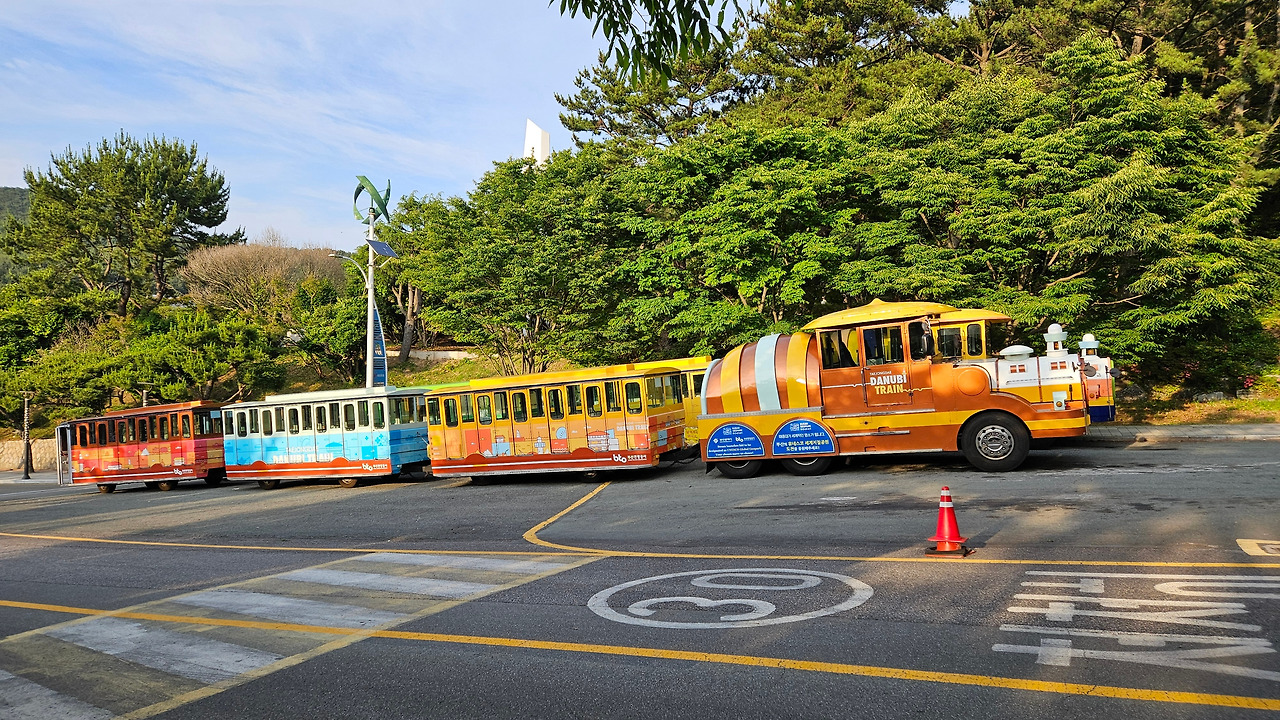 귀경 부산역 출발 시간 21:20까지 시간이 얼마 남지 않았다. 부산진성에서 태종대가 있는 영도로 급히 이동했다. 하는 수 없이 택시를 탔다. 같은 시골 출신, 여성 운전사분과 부산의 여러 가지 이야기와 살아온 인생여정을 함께 이야기하면서 부산대교를 넘어 태종대 정류장에 도착하였다. 친절하게도 태종대 관광지 내를 순환하는 '다누비 열차'를 타면 신속하게 구경할 수 있다고 이야기해 주셨다.