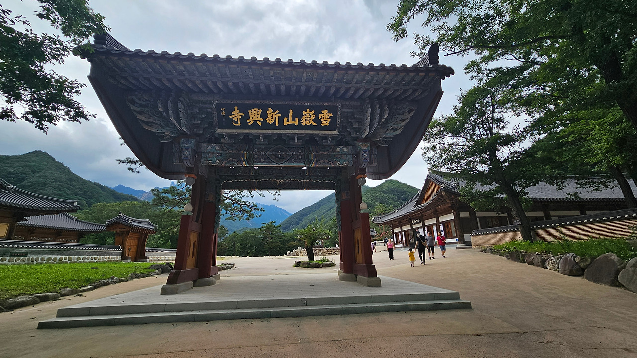 버스에서 내려 신흥사 초입에 있는 ‘조계선풍시원도장설악문‘으로 걸어 들어간다. 불교조계선종의 바람이 이곳 신흥사에서 불기 시작하였다는 뜻이라고 한다. 천왕문안의 구체적인 신흥사 이야기는 울산바위 코스 이야기 끝나고 하겠다.