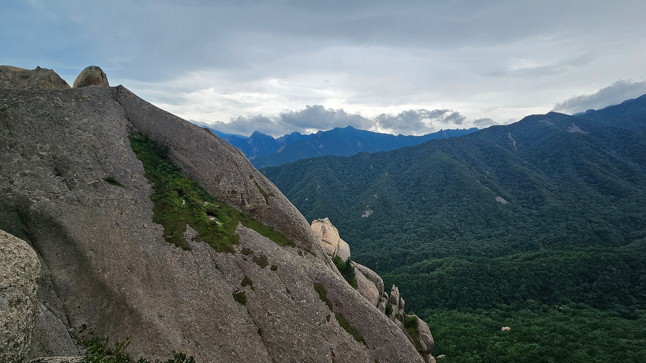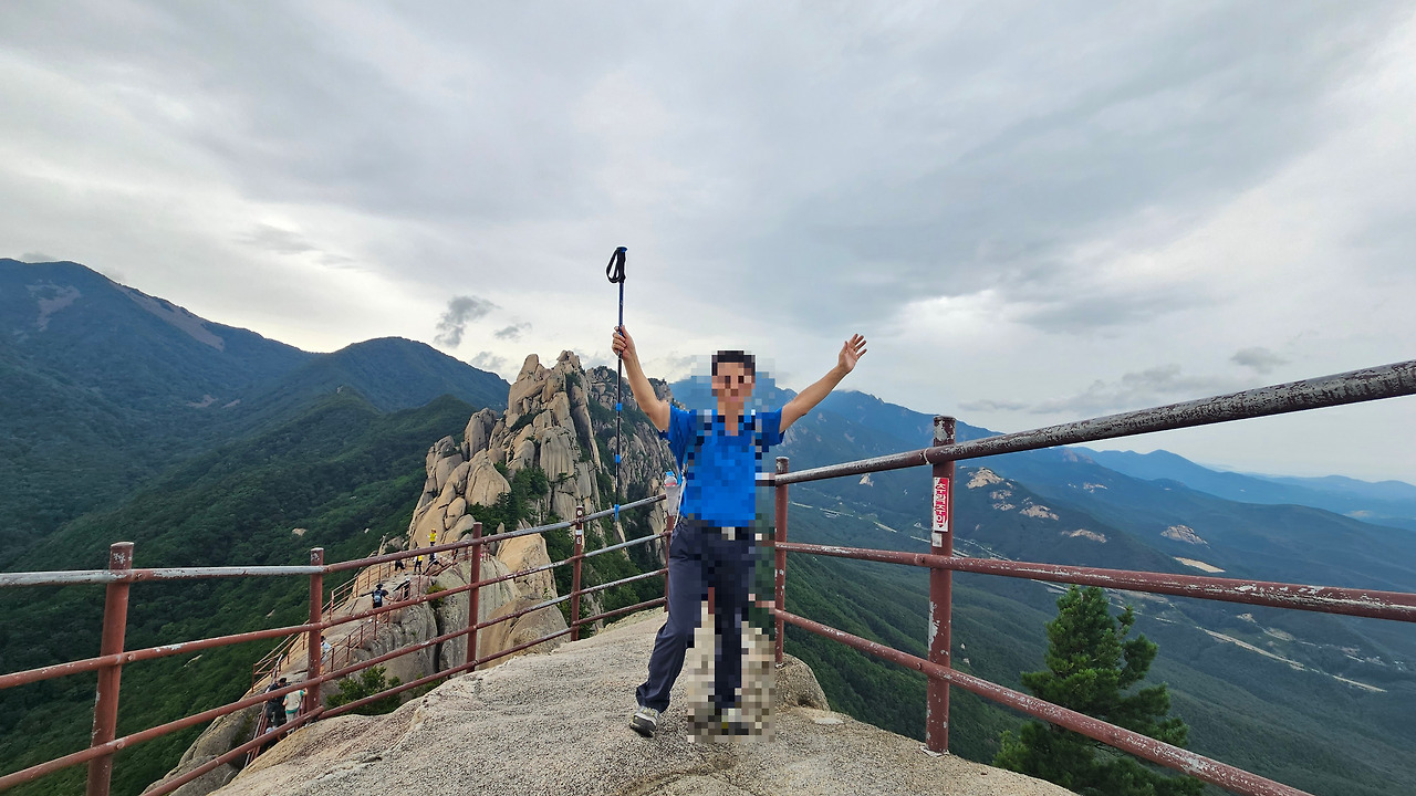 울산 바위 어떤 가족이 바위 밑에 옹기종기 모여 앉아서 전망을 즐기고 있었다. 속초시 풍경을 휴대폰으로 담고 있었는데 그때 가족 중에서 제일 젊은 여성 천사가 나타났다. 인생샷을 직접 찍어 주겠다고 했다. 만세를 부르는 포즈까지 주문받았다.