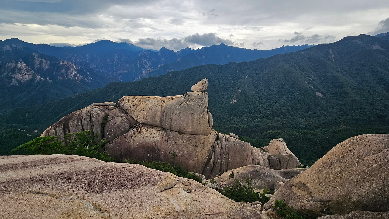 그 버스 승객의 절반은 유럽 쪽 국가에서 온 단체 관광객이 타고 있었다. 도중에 어떤 여성이 나이가 좀 더 많아 보이는 여성에게 자리를 양보하는 모습에서 따뜻한 인간적인 모습을 볼 수 있었다. 울산바위 꼭대기 올라가는 산행 중간중간에 유럽인들이 많이 보였다. 설악산의 인기를 실감할 수 있었다. 그들을 오게 만든 설악산의 매력포인트가 뭐일까? 추측건대 흔들바위와 통짜 거대한 바위 덩어리, 울산바위가 아닐까? 한 여성은 외출복 차림에 슬리퍼를 끌고 산꼭대기까지 올라왔다. 그 도전적 용감성에 놀랐다. 등산스틱을 빌려주겠다고 했더니, 웃으면서 괜찮다고 했다. 에베레스트 등산에 운동화 신고 올라갔다고나 할까?