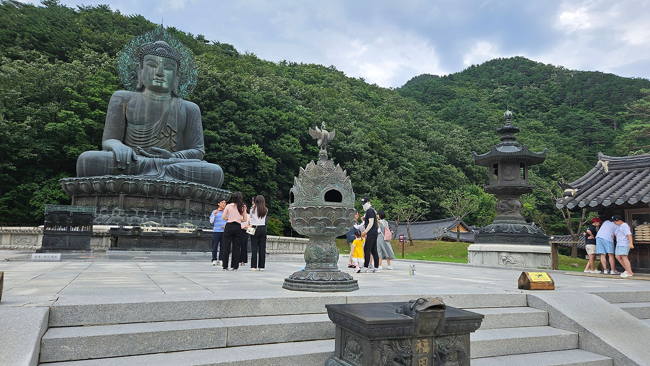 통일의 염원을 담아 부지 면적 3,300 평위에 1987년 착공, 1997년 10월 25일 완공했다. 높이 14.6m인 일본 가마쿠라시의 하세(장곡) 청동 대불보다 크다. 108톤의 청동으로 높이 17.5m 폭 14m 크기로 489개의 인조 큐빅으로 장식했다. (연합뉴스)