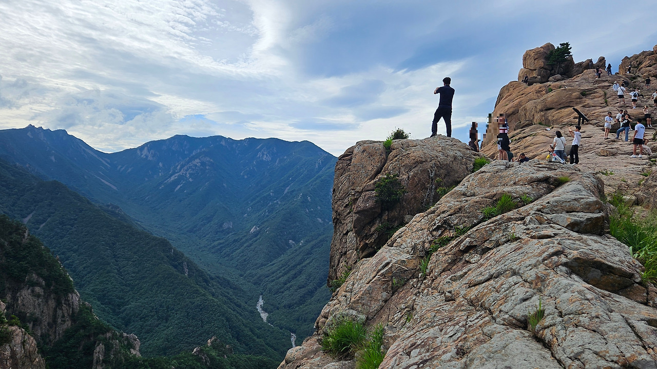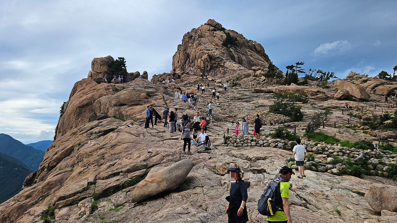 탑승장에서 내려 우측으로 5분 정도 가면 권금성이 나온다. 봉화대 올라가는 주변 바위 위에서 열혈 관광객들이 위험한 인생 샷을 찍고 있었다. 동절기 겨울철에는 목숨을 걸어야 할 정도로 위험하게 보인다. 발 밖은 바로 급경사 천 길 낭떠러지다. 접근금지 위험표시 철책시설 설치가 필요해 보인다.