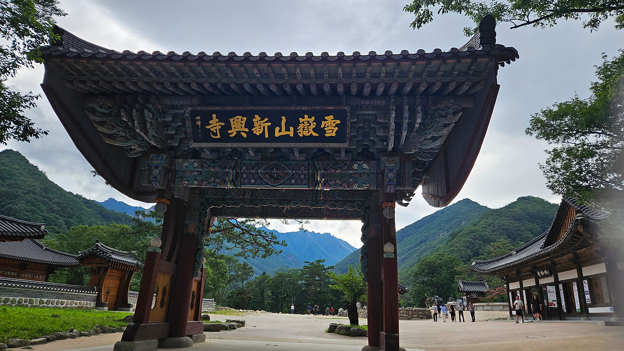 신흥사 일주문, 설악산 통일대불을 지나 흔들바위방향으로 올라가다 보면 좌측에 신흥사 천왕문이 나온다.