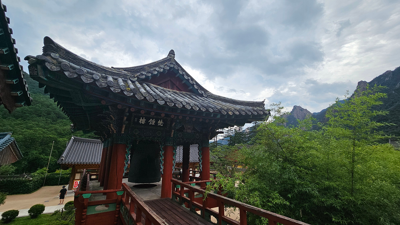 범종은 경내 보제루 옆에 보존되어 있는데, 이 종은 1400여 년 전 향성사의 종이라고 전한다. 향성사가 불탈 때 깨졌던 것을 1748년에 원각(圓覺)이 개주 했으나 소리가 완전하지 못하여 1758년에 홍안(弘眼)이 다시 개주 하였다. 이 종의 무게는 600㎏으로 6 · 25 전쟁 때 총상을 입은 뒤 1963년에 수리하여 보존 중이다. 총탄에 맞아 뚫린 구멍 흔적이 남아 있다. 사찰 탐방의 백미는 저녁시간 범종에서 울러 퍼지는 장엄한 종소리다. 시간이 없어 서둘러 나와야 했다.