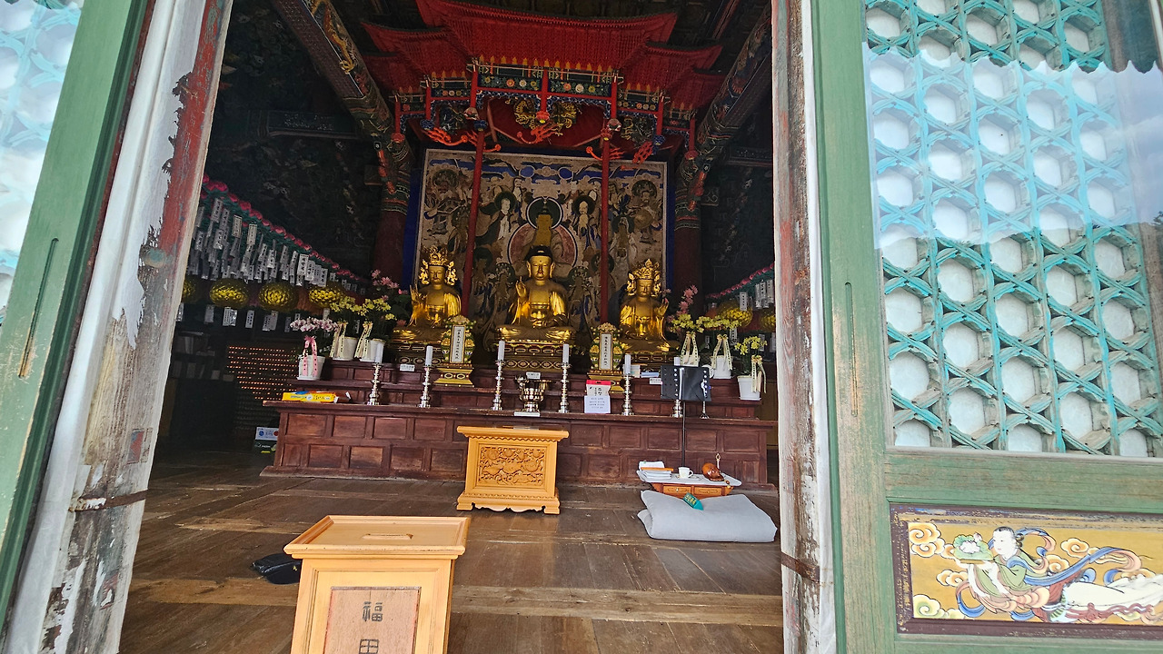 강원도 유형문화재로 지정되었으며 1644년에 세운 건물로 단청이 뛰어나다. 목조아미타여래삼존좌상은 불상내부의 배 부분에서 발견된 조성발문에 따르면 효종 2년(1651년) 조각승 무염이 만들었다고 한다.