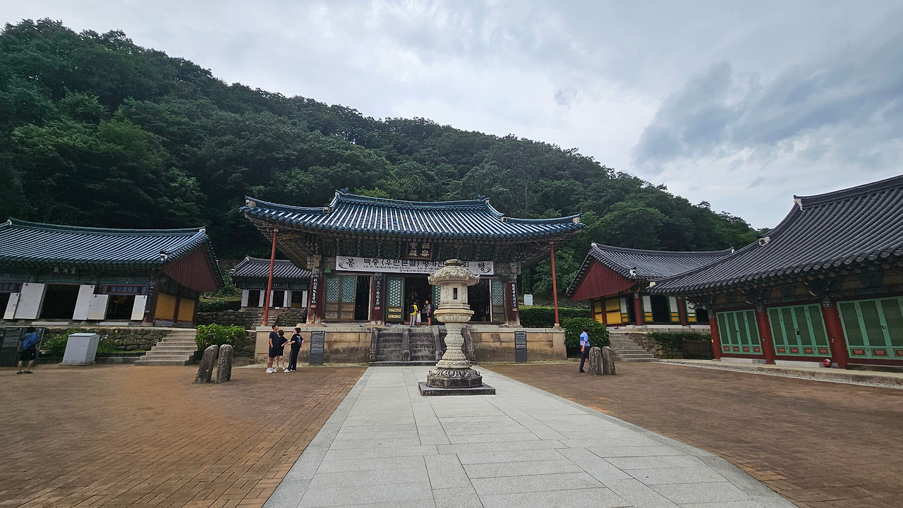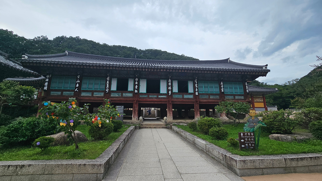 특히 명부전 좌측에 보라색 수국 1 거루가 소담스럽게 피어 있다. 산사와 수국은 좋은 조화를 이룬다. 산사 주변에 좀 더 많은 수국을 심었으면 좋겠다는 생각을 했다. 일례로 일본 가마쿠라시 장곡사(하세데라)에 수국관람 기간에 몇 시간이고 줄을 서서 대기하다가, 순번이 와서 구경하였던 생각이 나서다. 경내에 수국 주변 여러 가지 공사 중이라 조경에도 힘쓸 것이라 기대하여 본다.