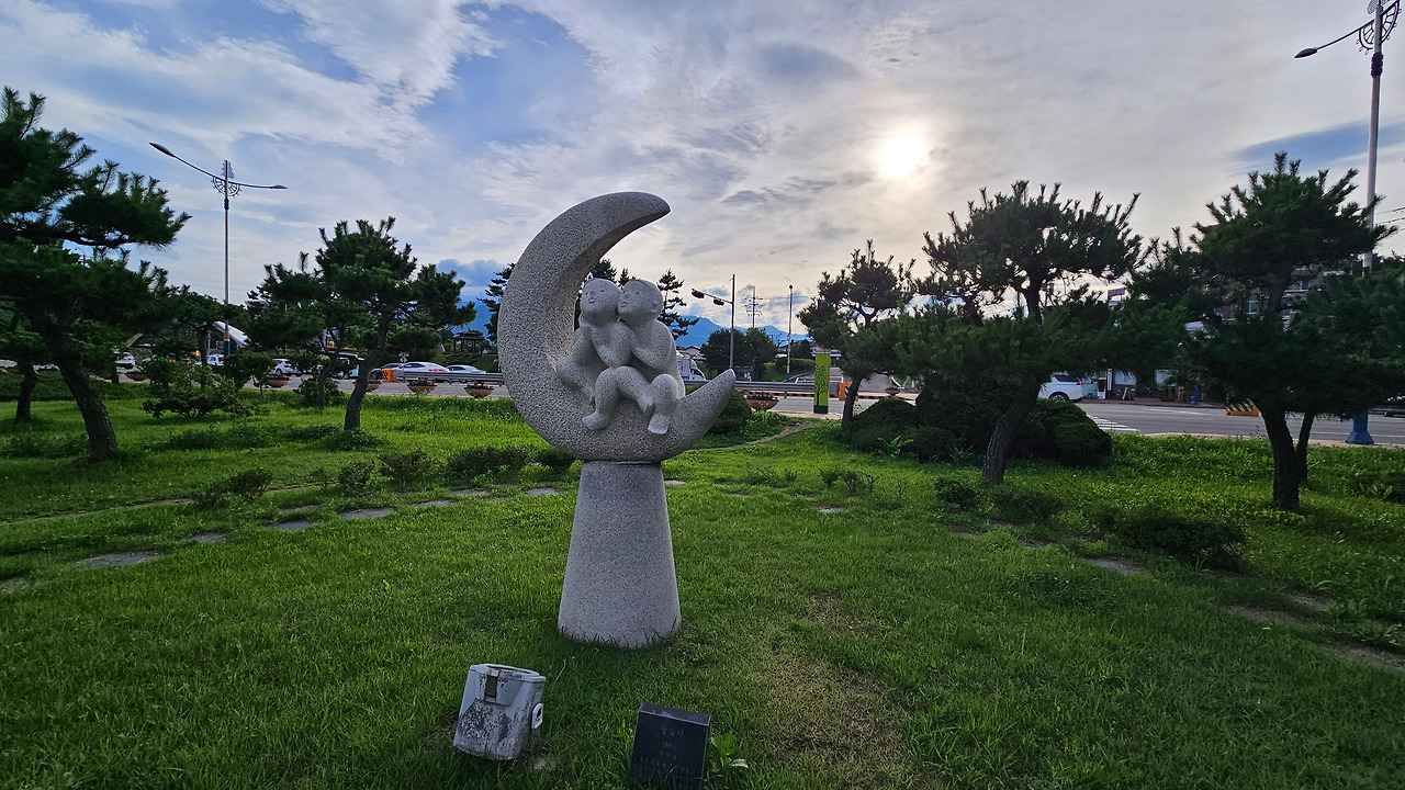 앞은 동해바다, 뒤는 설악산이다. 설악산계곡에서 쌍천을 타고 내려온 물이 이곳에서 바다와 만난다. 만남 조화 상생의 품위가 있는 장소다. 각종 조각 작품 30여 점이 배치되어 있고 해송사이의 일출이 아름답다. 주변 민박촌과 호텔들이 바다 풍경을 잘 볼 수 있는 언덕에 위치해 있다.